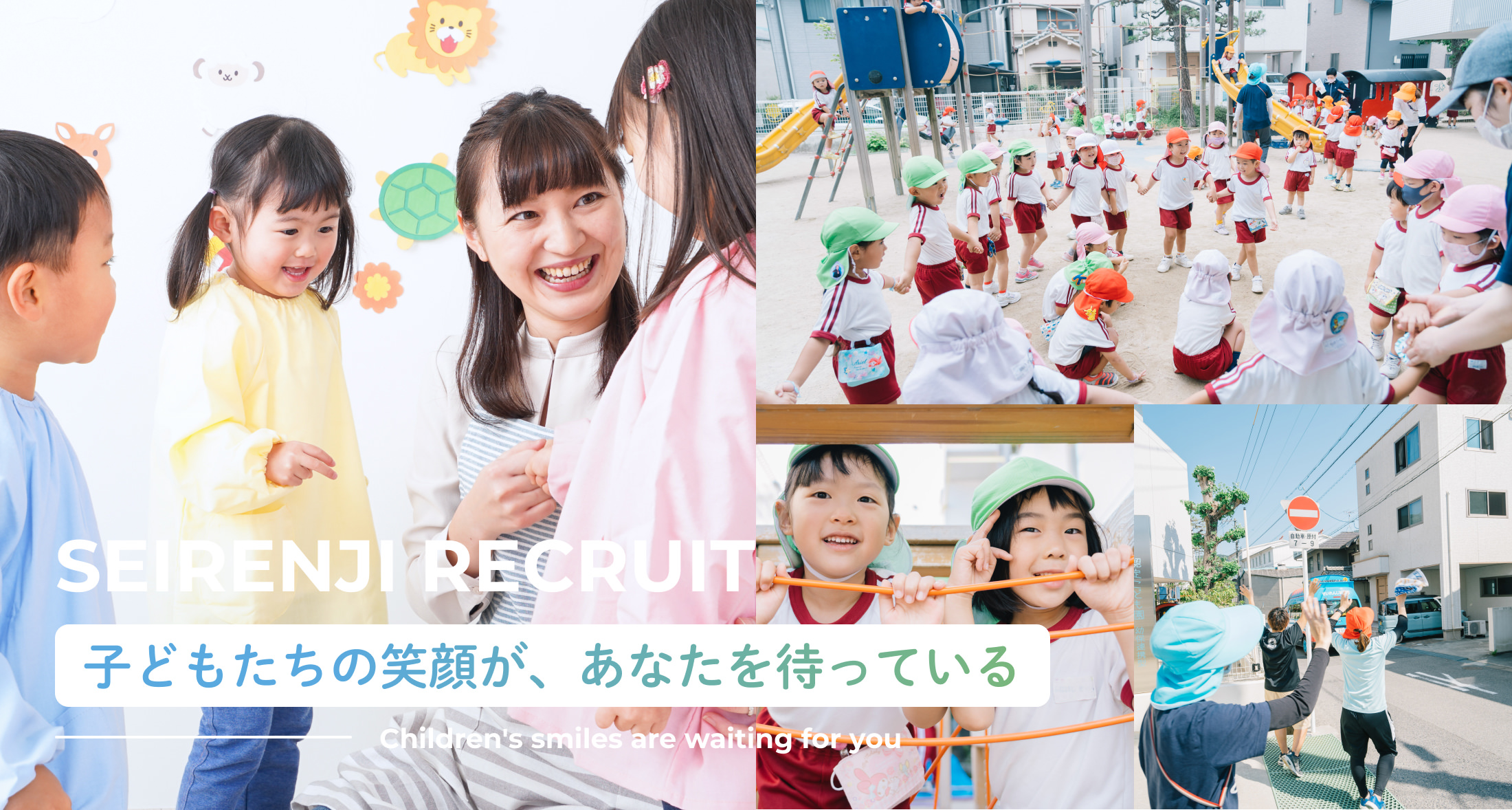 せいれんじは「認定こども園せいれんじ」(呉市伏原)と「企業主導型保育園 駅前せいれんじ」(呉市西中央)を運営しています。